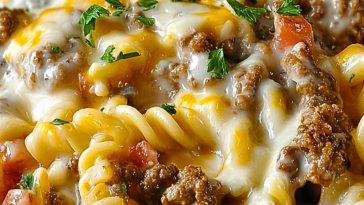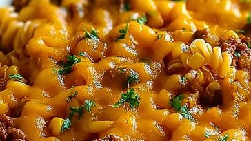 Cheesy Beef and Sweet Corn Rotini Bake