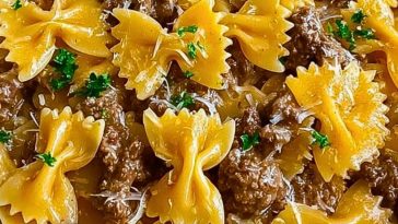 Garlic Butter Beef & Cheesy Bowtie Pasta