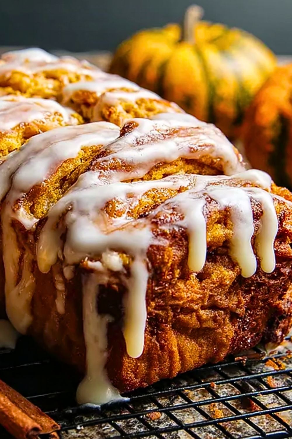 Cinnamon Roll Pumpkin Bread with Cream Cheese Glaze