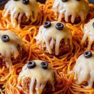 Spooky Spaghetti & Cheesy Monster Meatballs