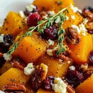 • Honey Roasted Butternut Squash with Cranberries, Pecans, and Feta