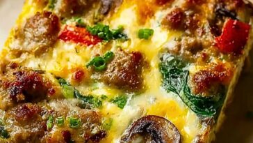 • Hearty Sausage Spinach Mushroom Egg Bake