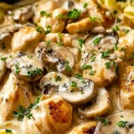 • Creamy Garlic Parmesan Chicken with Cheesy Twisted Pasta