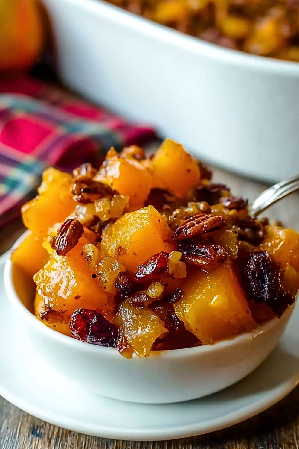 This Autumn Butternut Squash Apple Bake can be customized to suit your taste or dietary needs. If you’re avoiding nuts, simply omit the pecans or substitute with pumpkin seeds for added crunch. You can also swap dried cranberries with golden raisins or chopped dried apricots for a unique twist. The use of maple syrup adds a gentle, earthy sweetness, but honey or agave can be used as alternatives. Serve it warm as a side for roasted meats, or enjoy it as a vegetarian main with a grain like quinoa or wild rice.