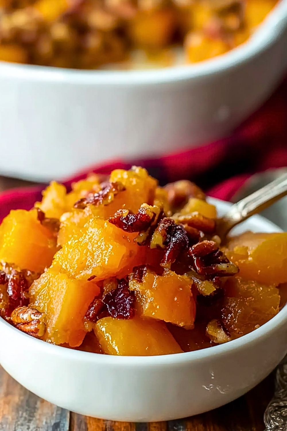 To make prep faster, opt for pre-cut butternut squash if you’re short on time. Choose firm, crisp apples like Honeycrisp or Granny Smith—they hold their shape and balance the sweetness. If using raw pecans, give them a quick toast in a dry pan to intensify their flavor. Be sure to coat all ingredients evenly with the spice and syrup mixture for consistent taste in every bite. Don’t overbake—you want the squash to be fork-tender, not mushy. And for even better flavor, let the bake sit for a few minutes after removing it from the oven to allow juices to settle.
