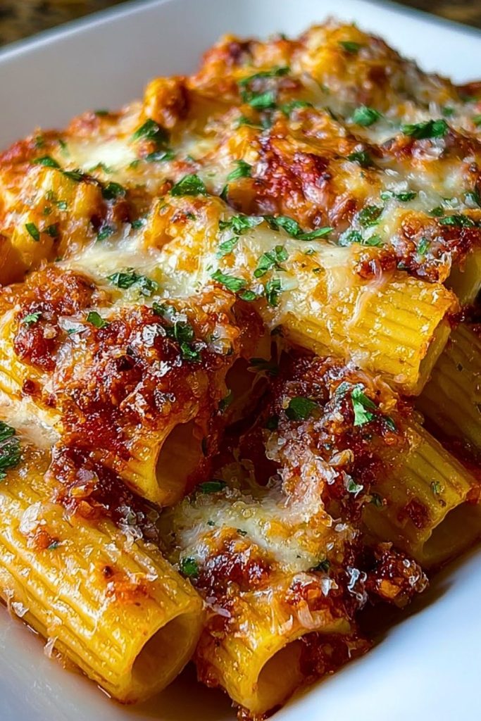 This rich and cheesy Baked Rigatoni Pasta is the ultimate easy dinner idea that delivers comfort in every bite. Perfect for busy weeknights, cozy weekend meals, or when you need to feed a crowd, this hearty dish is made with rigatoni pasta, savory meat sauce, and layers of gooey cheese. It’s a quick dinner recipe that freezes well, reheats beautifully, and tastes even better the next day. Whether you’re craving a warm comfort meal or seeking a new addition to your dinner ideas collection, this baked rigatoni is a guaranteed win for family meals, gatherings, or meal prep. Perfect for those looking for food ideas that are simple, satisfying, and full of flavor.