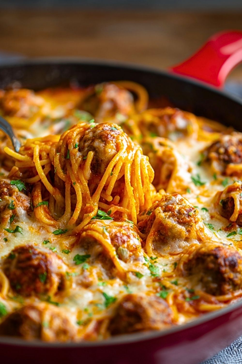 Use slightly undercooked spaghetti, as it will continue cooking in the oven and absorb the sauce. When forming meatballs, wet your hands to prevent sticking and aim for even sizing to ensure they cook uniformly. If you’re short on time, you can use frozen or store-bought meatballs, but homemade ones elevate the dish significantly. Also, let the dish rest for 5–10 minutes before serving to allow the sauce to thicken and the flavors to settle.