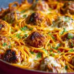 Golden, cheesy, and bubbling with comfort—Baked Spaghetti Meatballs is the kind of dinner that turns a regular weeknight into something a little more special. This dish combines everything you love about a classic Italian-American meal: tender meatballs, saucy spaghetti, and a golden crust of melted cheese, all baked together in a single dish. It’s cozy, hearty, and bound to make everyone at the table smile.