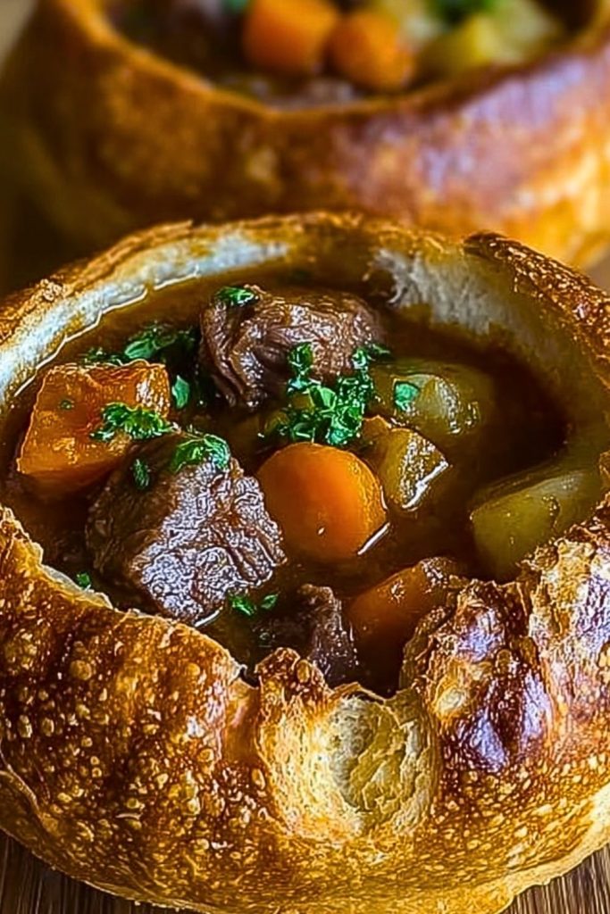 This recipe brings together everything I crave on a lazy weekend or a busy weeknight when I want something extra comforting. The slow-simmered beef becomes melt-in-your-mouth tender, the vegetables soak up the deep flavors of the broth, and that buttery bread bowl? It turns dinner into something a little magical. I’ve served this to guests, and trust me, they never leave a crumb behind.