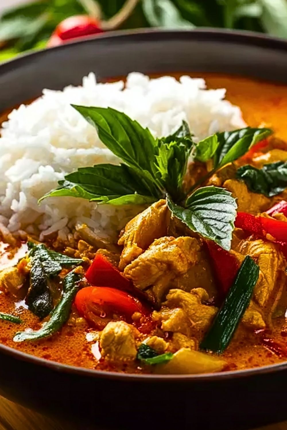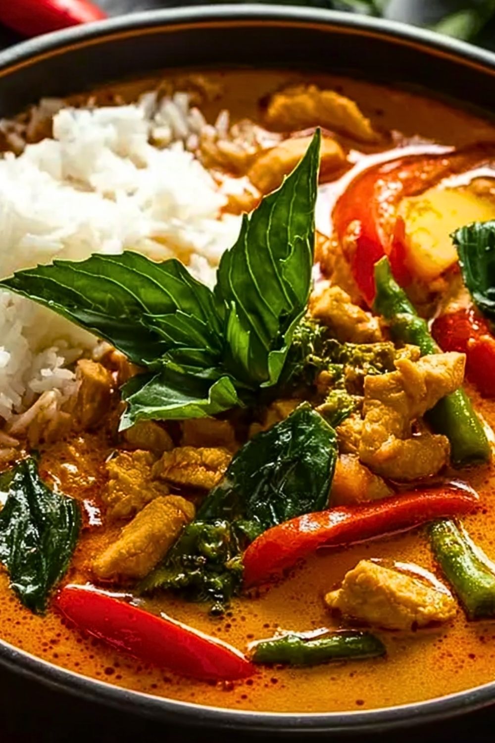 Rich, creamy, and packed with aromatic spices, Thai Panang Curry is one of those dishes that instantly transports your senses to the bustling streets of Bangkok. With its signature blend of red curry paste, coconut milk, tender meat (often chicken), and vibrant vegetables, this dish strikes the perfect harmony between heat, sweetness, and umami. What sets Panang curry apart is the thick, luscious texture and its gentle, nutty undertone from crushed peanuts or peanut butter, creating a depth of flavor that lingers long after the last bite.