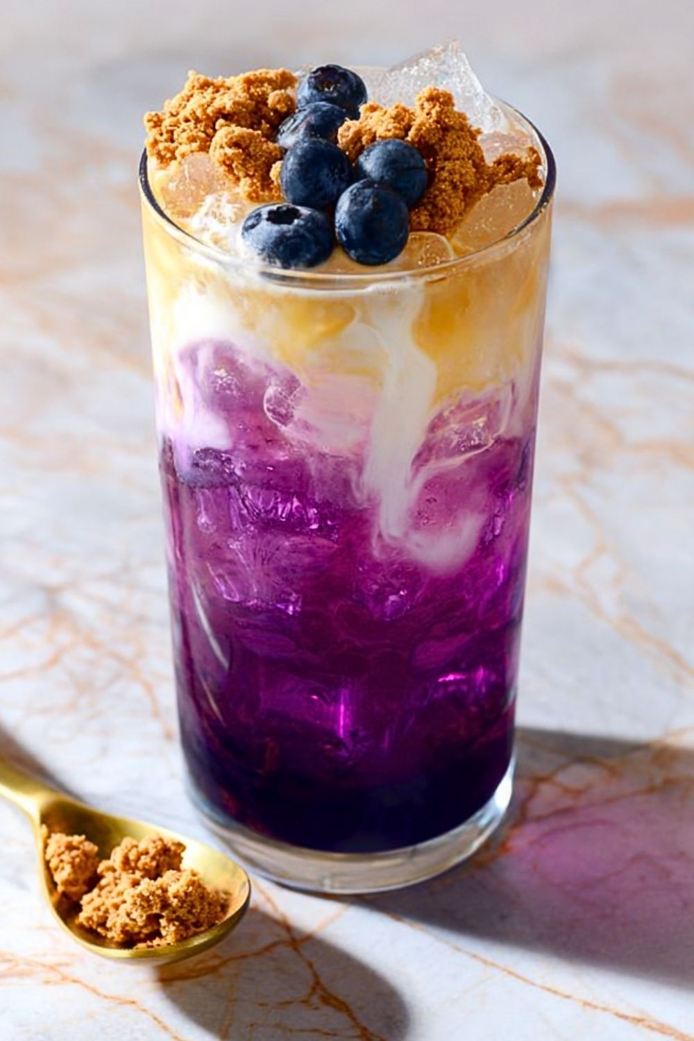 This drink is more than just visually stunning—it delivers layers of flavor in every sip. The tangy blueberry notes blend beautifully with the creamy topping, while the soda adds a refreshing sparkle that keeps it from feeling too heavy.