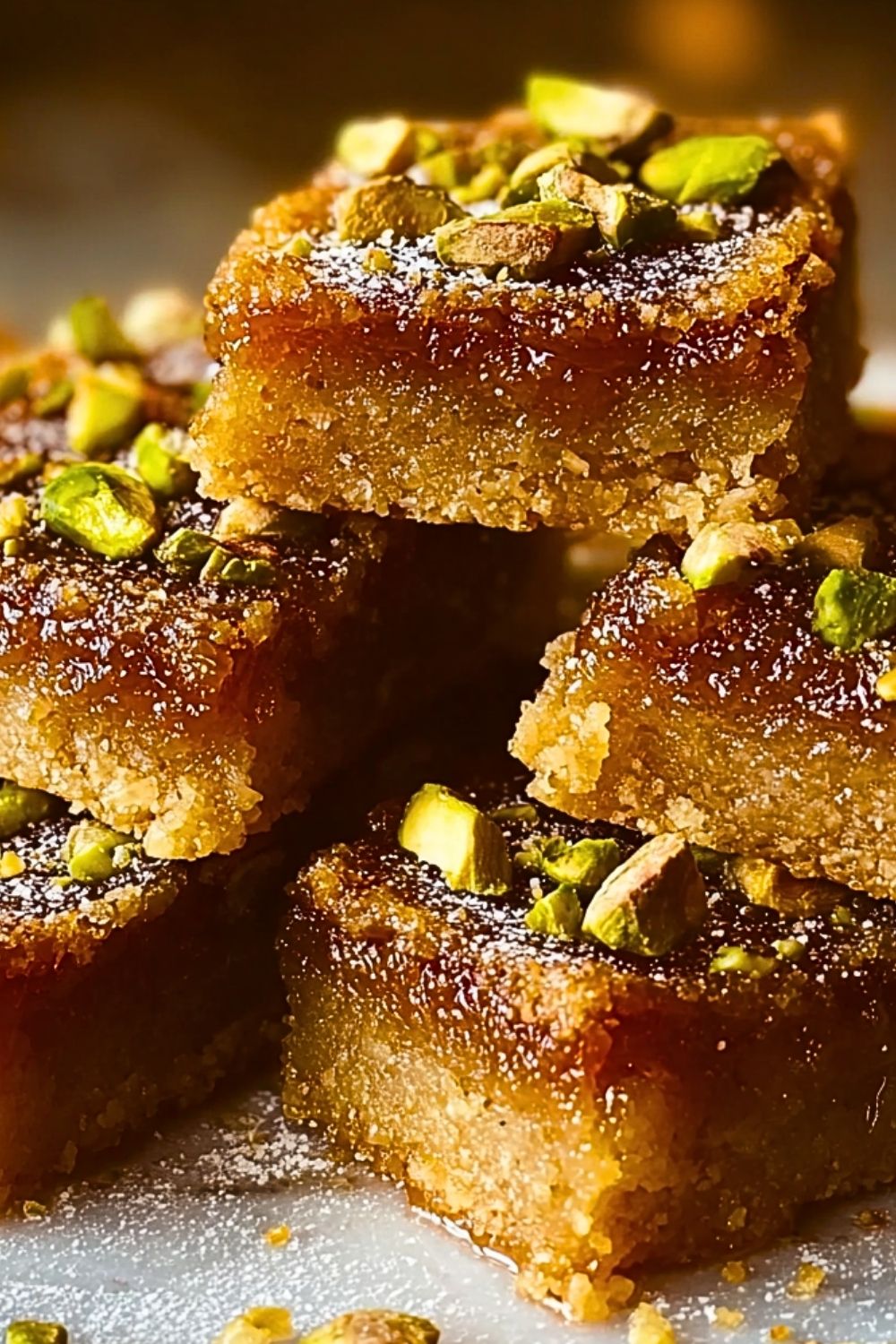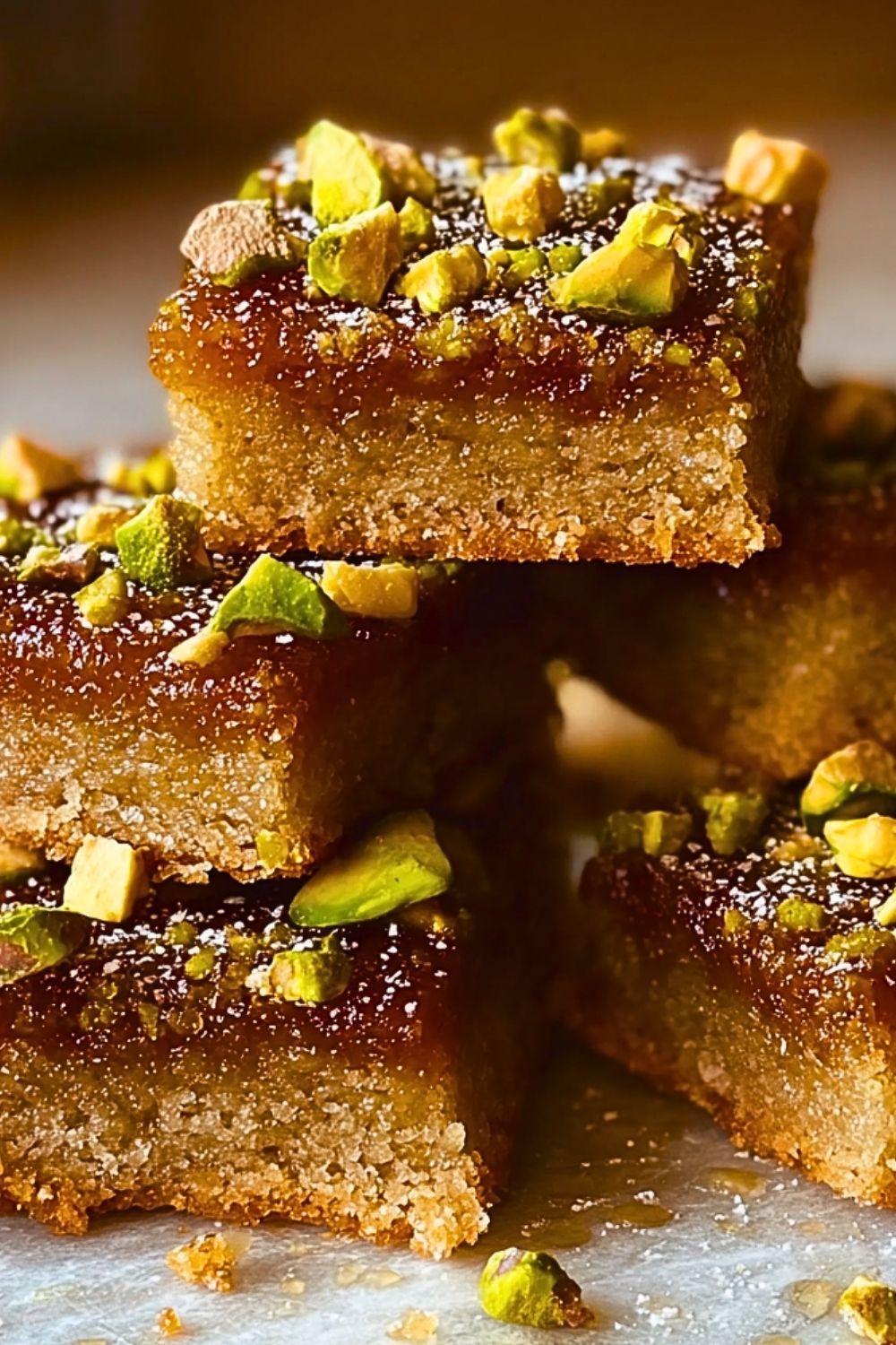 What makes these bars truly memorable is the balance of textures and flavors—the crisp golden edges, the tender center, and the lightly toasted pistachios scattered across the top. Whether served with coffee, as a dessert, or gifted to friends, they bring a cozy yet elevated touch to any occasion.