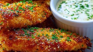 • Crispy Parmesan-Crusted Chicken Tenders with Garlic Dip
