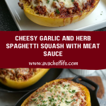 Cheesy Garlic and Herb Spaghetti Squash with Meat Sauce