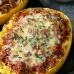 Looking for a cozy, satisfying, and low-carb dinner idea? This Cheesy Garlic and Herb Spaghetti Squash with Meat Sauce is your new go-to! It’s a gluten-free, healthy alternative to traditional pasta that doesn’t sacrifice flavor. Featuring tender roasted spaghetti squash, savory meat sauce, melted mozzarella, and fragrant herbs, this dish is perfect for busy weeknights, family dinners, or easy meal prep. It’s one of those quick dinner recipes that checks every box—hearty, cheesy, comforting, and wholesome. Ideal for anyone seeking healthy dinner ideas or low-carb food options that are actually crave-worthy.