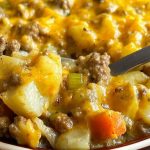 Nothing says comfort food like a bubbling, cheesy casserole fresh from the oven — and this Cheesy Ground Beef & Potato Dinner Casserole delivers exactly that. Loaded with tender cubes of potatoes, seasoned ground beef, melty cheddar cheese, and a medley of sautéed vegetables, it’s a hearty meal perfect for busy weeknights or lazy Sunday dinners. Every forkful is warm, creamy, and packed with flavor — it’s the kind of dish the whole family will ask for again and again.