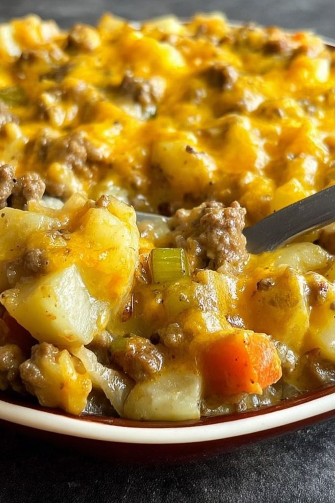 What makes this casserole extra special is its balance of textures and flavors. The potatoes soak up all the rich juices from the beef and spices, while the cheese melts into every crevice, creating a gooey, golden blanket on top. It’s satisfying, affordable, and simple to prep — a true one-dish wonder that brings both convenience and comfort to your dinner table.
