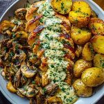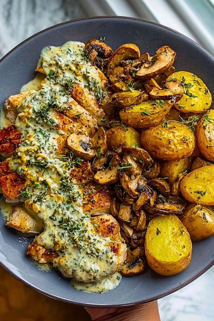 Looking for an easy dinner idea that feels both cozy and gourmet? This Chestnut Garlic Greek Chicken Alfredo with Sage Potatoes & Mushroom Pesto Cream brings Mediterranean comfort and elegance to your table. Juicy, marinated chicken bursts with garlic and chestnut flavor, then gets blanketed in creamy Alfredo sauce. It’s paired with crispy sage-roasted potatoes and mushrooms swimming in a dreamy pesto cream. This dish is perfect for a comforting weeknight dinner, healthy-ish indulgence, or impressing guests with minimal effort. Ideal for anyone craving food ideas that balance hearty textures, creamy richness, and herby depth. Whether you’re looking for quick dinner recipes or new ways to enjoy Greek-style chicken, this is one of those must-try meals.