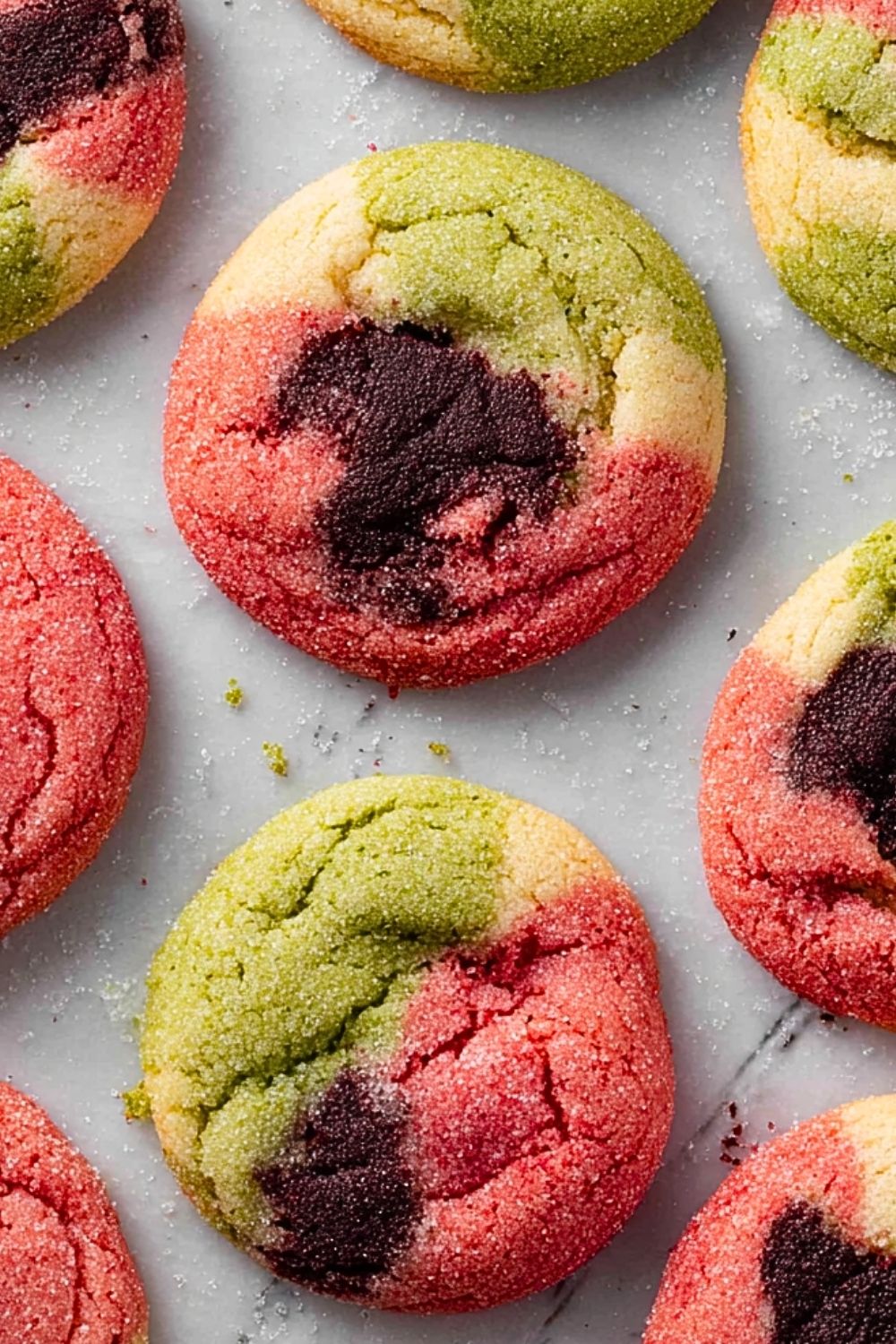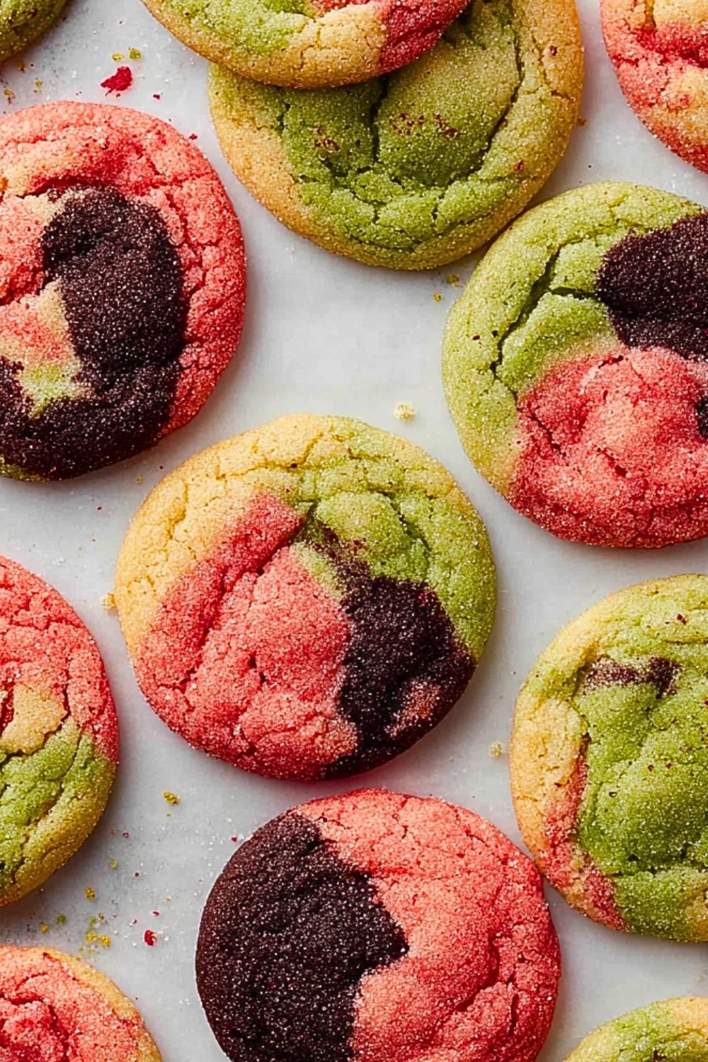 Once cooled, the cookies should have a soft, chewy center with slightly crisp edges. The tri-color pattern should be visible and vibrant, making each cookie unique.