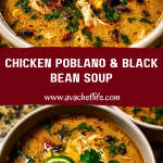 Keywords: chicken soup, poblano soup, black bean soup, easy dinner, creamy soup, healthy meal, comfort food