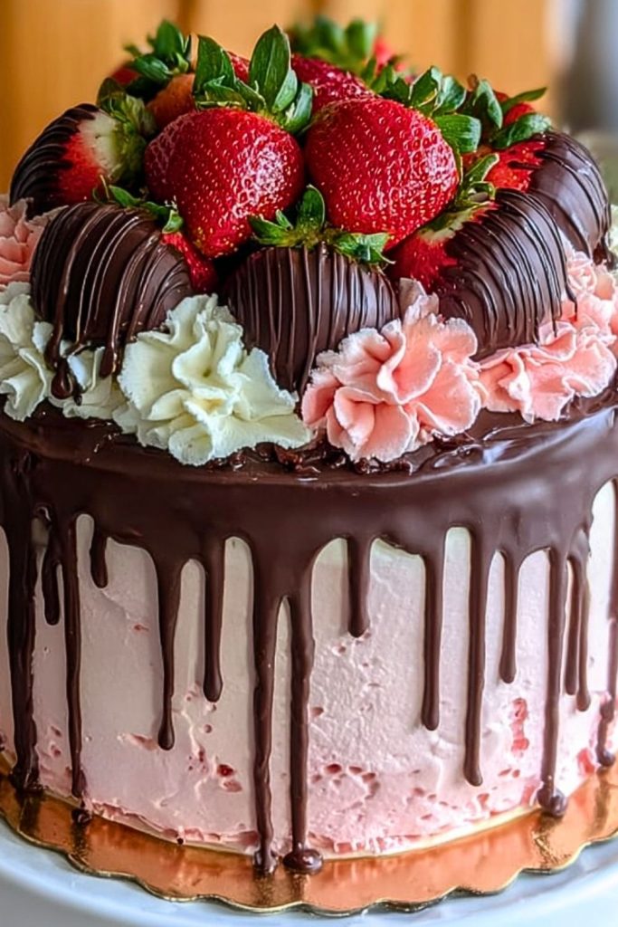 The Chocolate Covered Strawberry Drip Cake isn’t just a dessert—it’s a love letter in cake form. It takes a little more effort than your average bake, but the results are absolutely worth it: moist chocolate layers, luscious strawberry buttercream, and that signature glossy drip topped with chocolate-dipped berries. Whether it’s for a romantic celebration, an elegant gathering, or a “just because” indulgence, this cake delivers beauty, balance, and bold flavor in every slice.