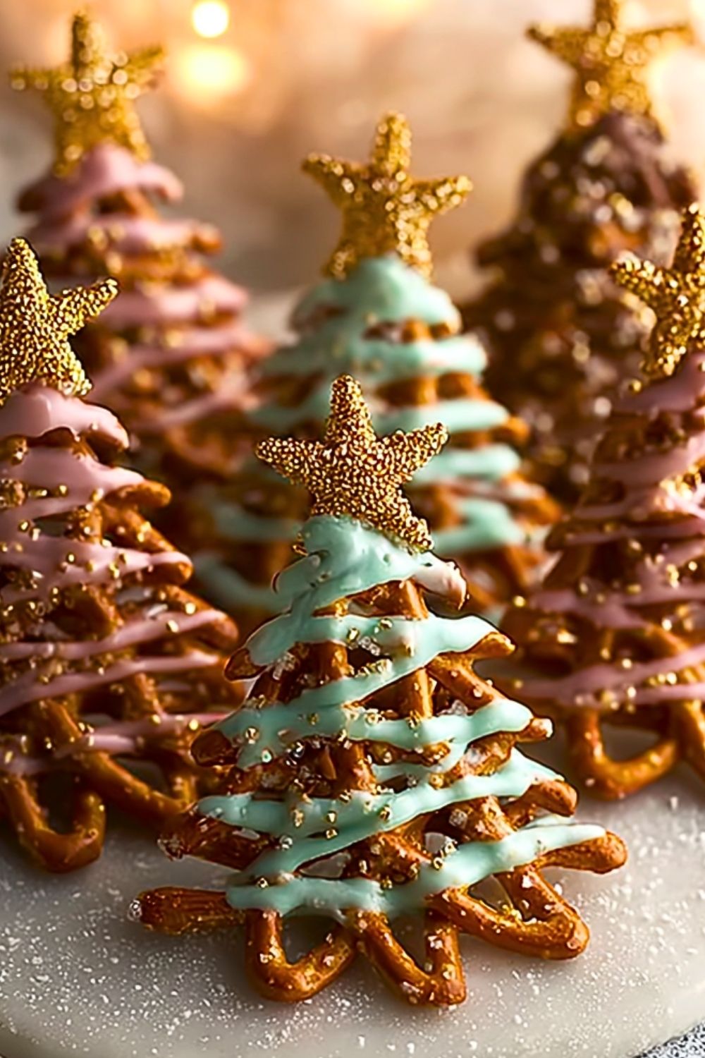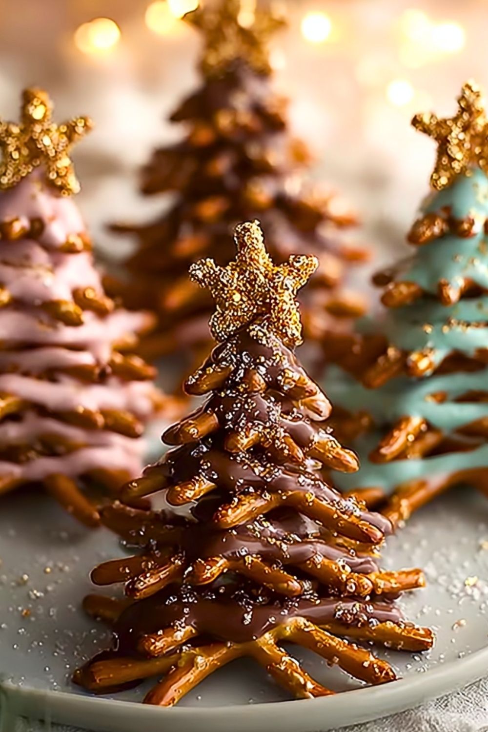 These Chocolate Pretzel Trees are the kind of festive treat that instantly brings a playful holiday vibe to your table. Built from crunchy pretzel sticks and coated in smooth, colorful chocolate, each little tree looks like a miniature edible decoration—complete with shimmering sprinkles and a sparkling star on top.