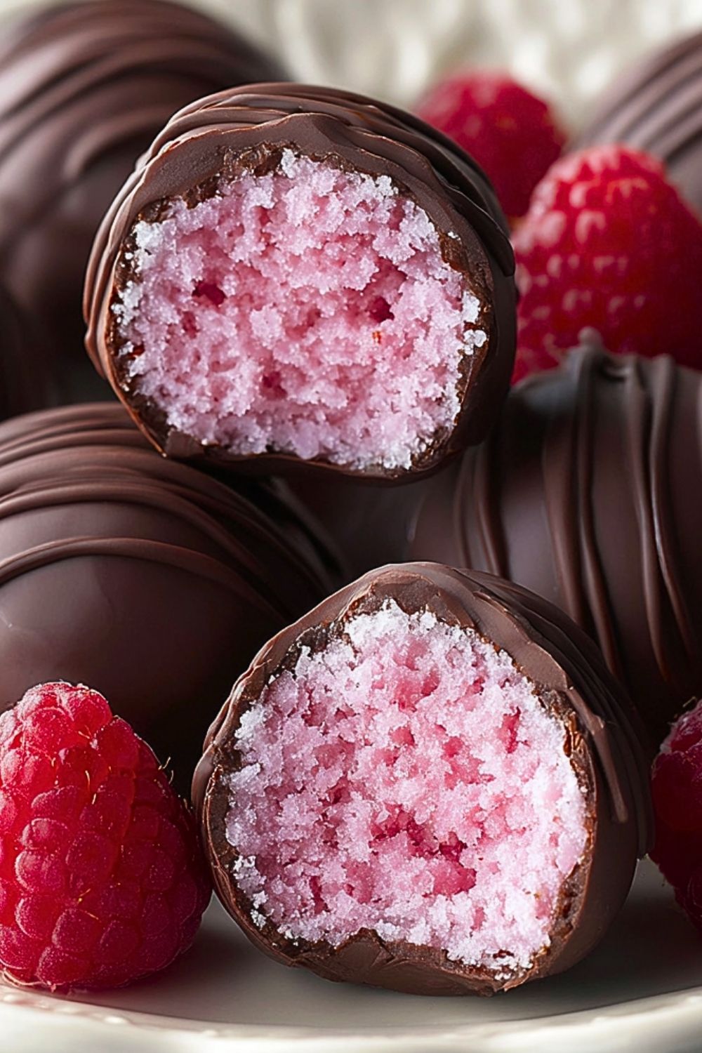 Keywords: chocolate truffles, raspberry dessert, easy dessert, party treats, no-bake recipes, homemade candy