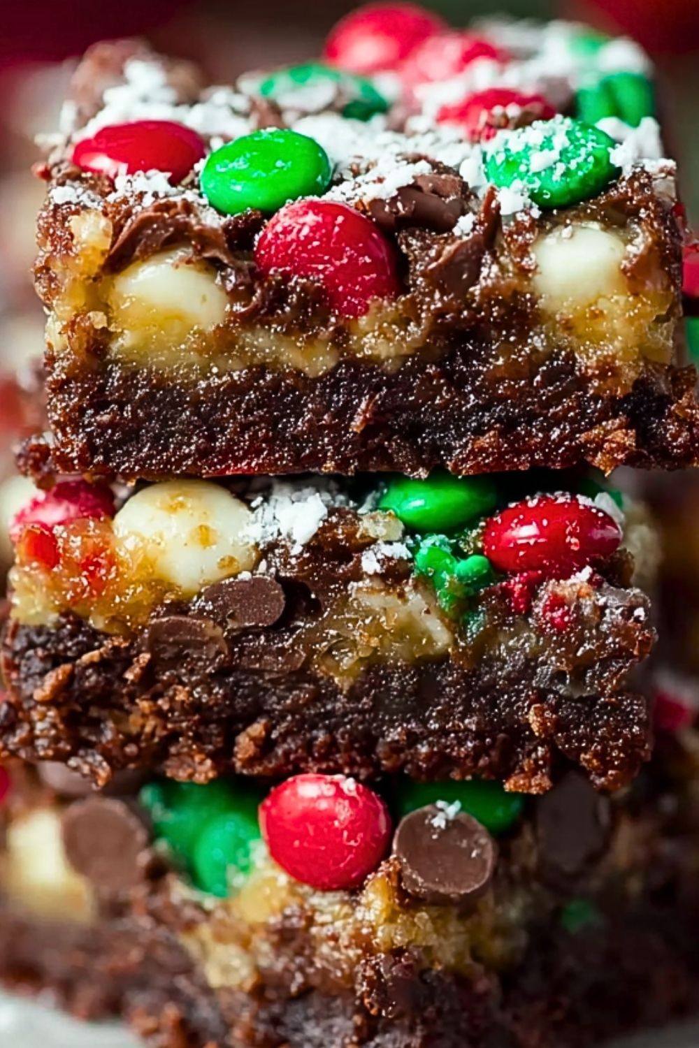 - Holiday M&Ms (red, green, and white): The festive visual pop and sweet crunch make these bars perfect for Christmas.
