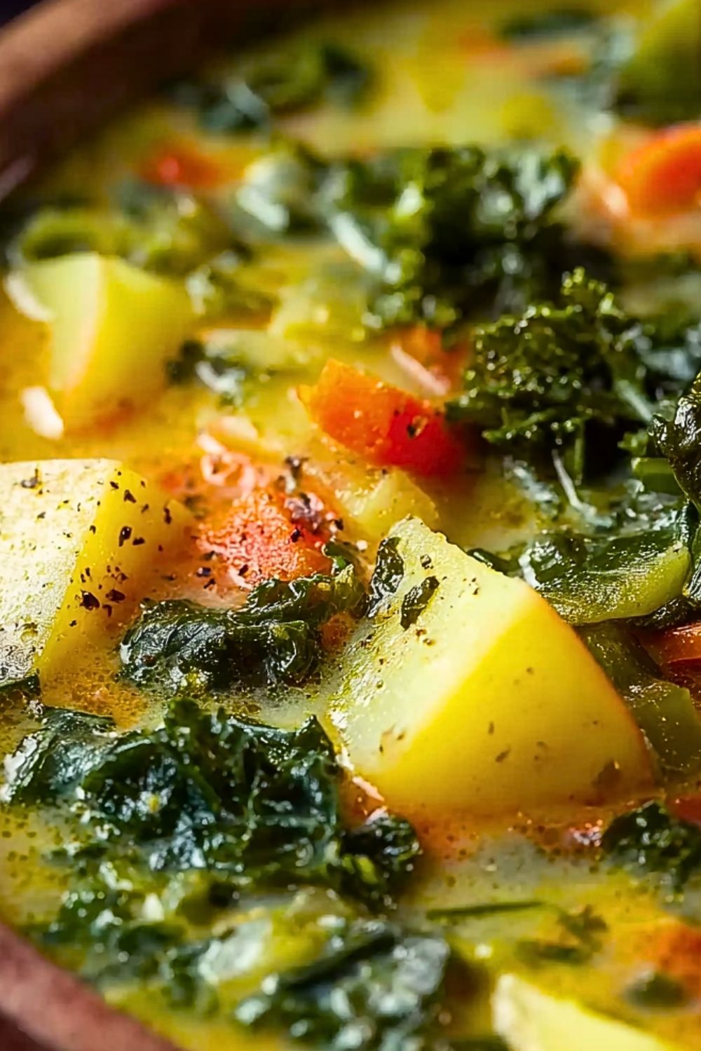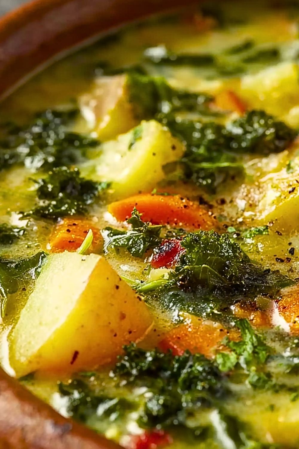 Keywords: chunky potato soup, kale soup, easy dinner, healthy soup, vegan option