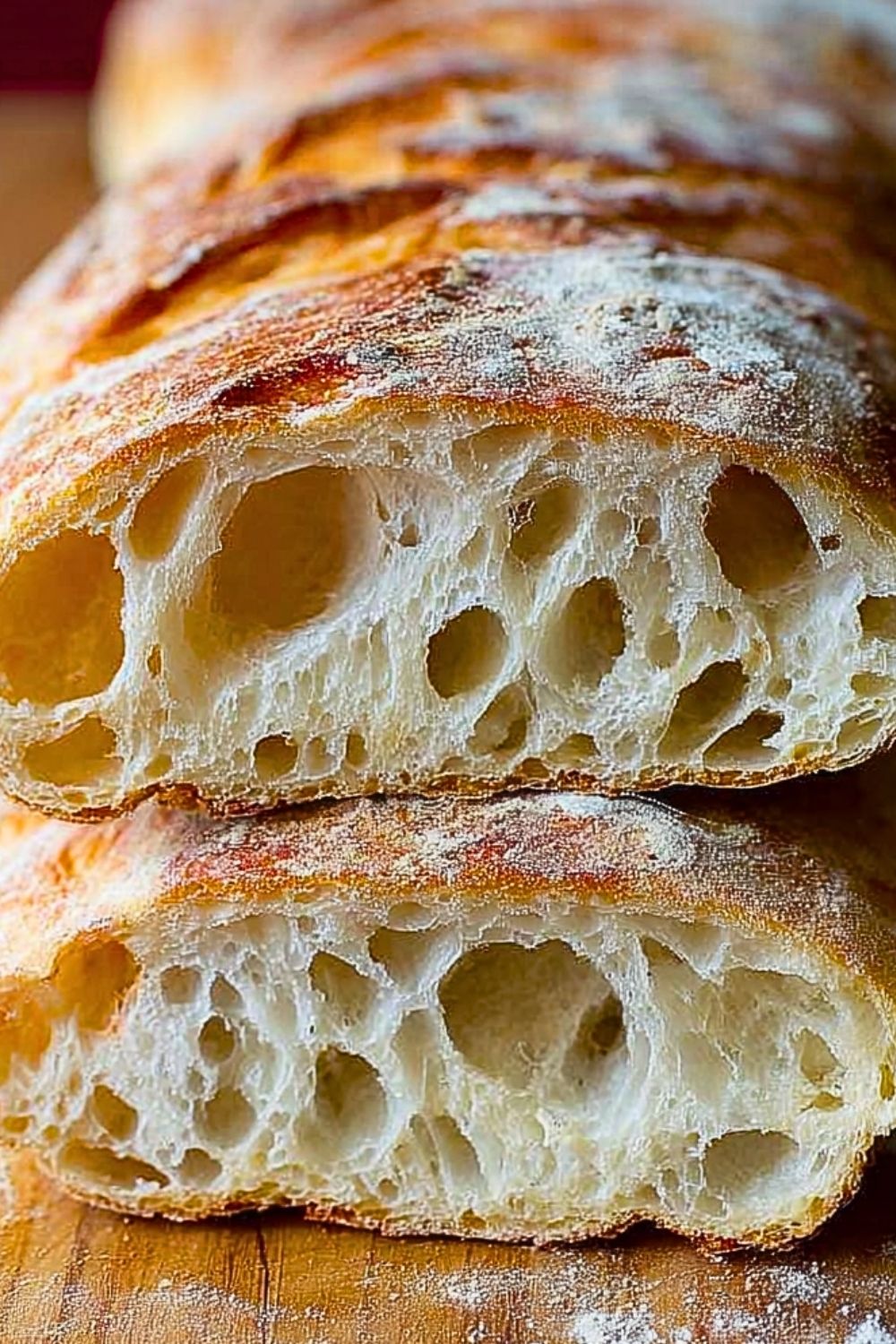 I love baking ciabatta on a lazy weekend when I have time to let the dough develop flavor slowly. The smell that fills the kitchen as it bakes is enough to make you hungry long before it’s done. Whether I’m serving it with a hearty soup or just slathering it with butter and sea salt, homemade ciabatta always feels like a little celebration.