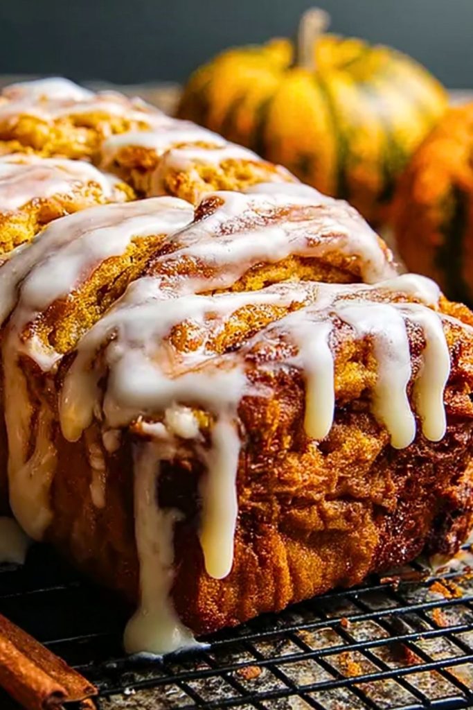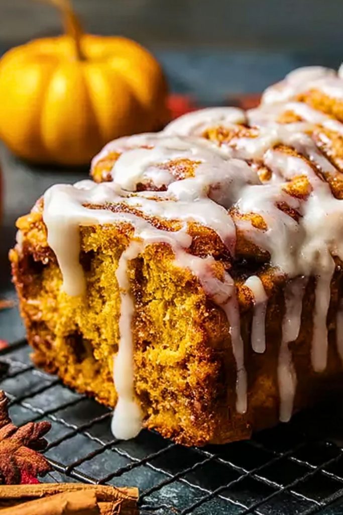 Keywords: pumpkin bread, fall dessert, quick breakfast, easy recipe, cinnamon roll bread