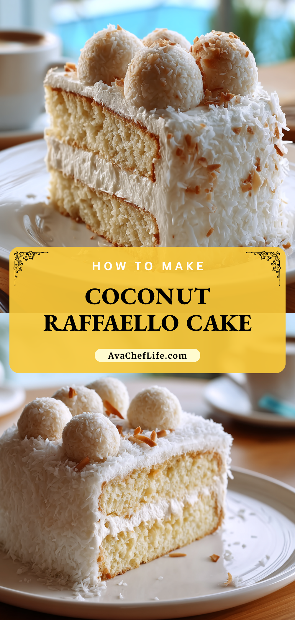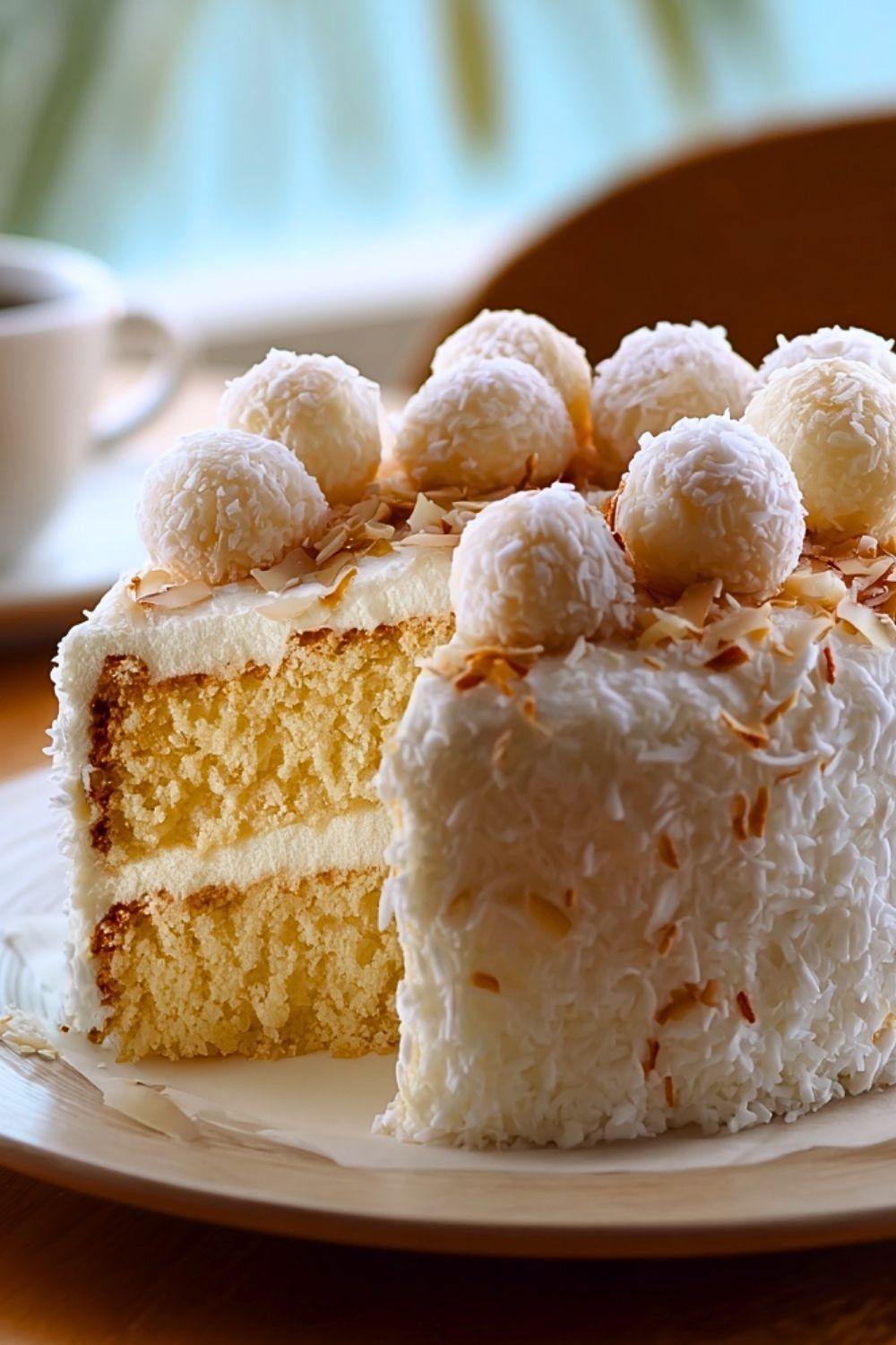 Keywords: coconut cake, raffaello cake, easy dessert, celebration cake, white chocolate, healthy snack, breakfast ideas, dinner dessert