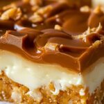 In another bowl, beat the softened cream cheese until smooth. Add powdered sugar and vanilla extract, then slowly pour in the heavy cream while mixing. Continue beating until the mixture is creamy and spreadable. Spread this filling evenly over the cooled crust. Chill in the fridge while preparing the toffee layer.