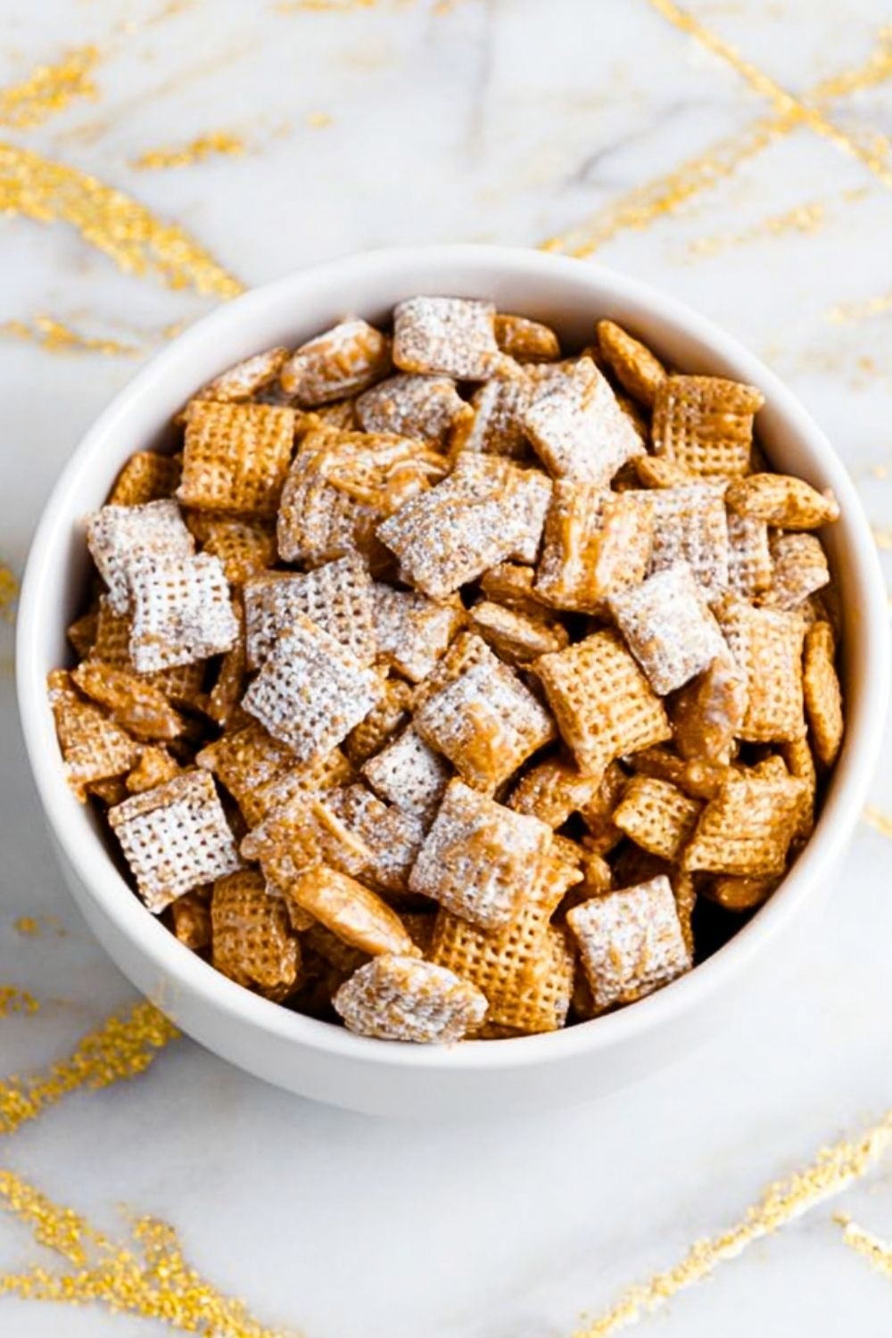 Freezer: This puppy chow freezes surprisingly well. Place it in a freezer-safe container or bag and store for up to 2 months. Let it sit at room temperature for a few minutes before serving.