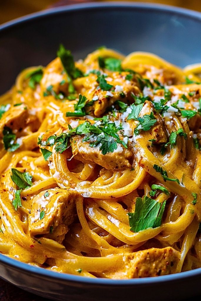 Whether you’re feeding a hungry crowd or just want to impress yourself on a weeknight, this pasta delivers. It feels indulgent and comforting while requiring minimal effort—just one skillet and one pot. Plus, it hits all the right notes: creamy, savory, slightly spicy, and freshened up with chopped parsley and a squeeze of lemon at the end. If you’ve been searching for a new pasta obsession, Cowboy Butter Chicken Linguine just might be it.