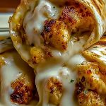 Golden seared chicken, seasoned to perfection, wrapped in a warm, toasty tortilla and drenched in a rich, creamy garlic cheese sauce — Cozy Cheesy Garlic Chicken Wraps are the ultimate comfort food in handheld form. Every bite melts with cheesy goodness and delivers a punch of garlicky flavor that’s both soothing and deeply satisfying. This dish brings together the hearty satisfaction of a classic chicken wrap with the indulgent warmth of a cheese-laden dinner.