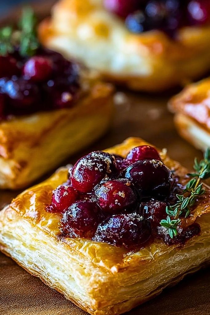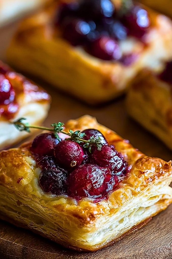 Bake the pastries for 14–18 minutes, or until the edges are puffed and deep golden. The cheese should be melted and the cranberries bubbling slightly.