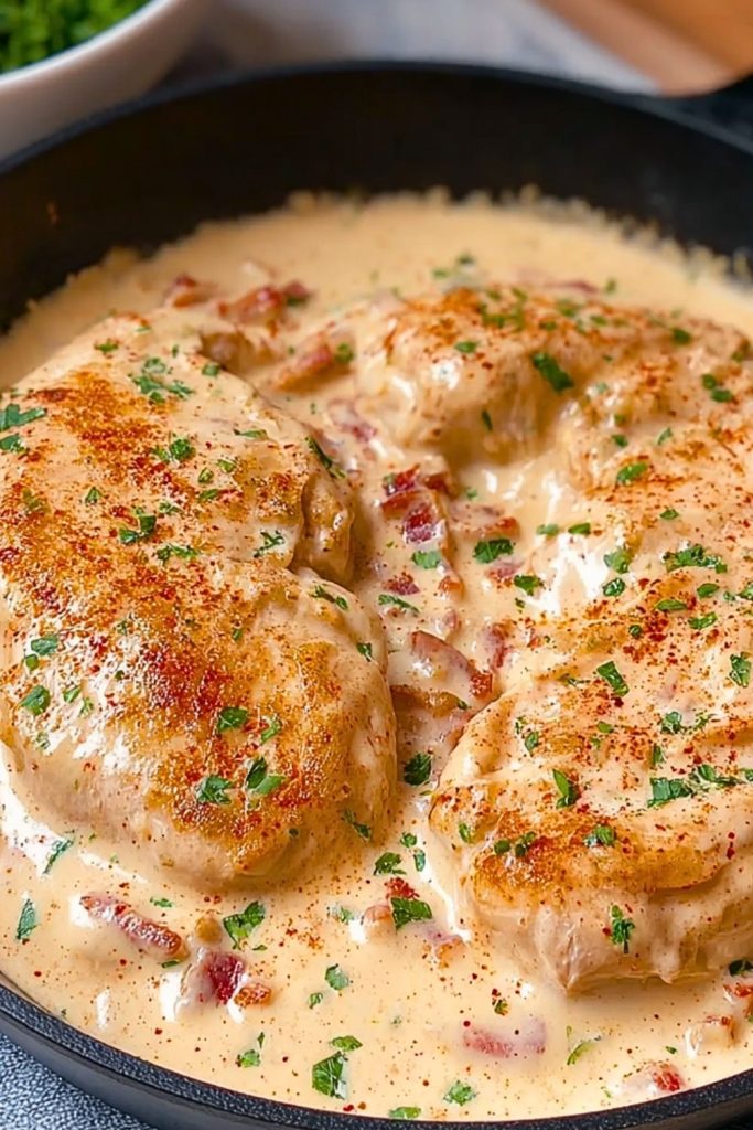 This Cream Cheese Chicken recipe is a cozy and satisfying one-pan meal that’s rich, creamy, and full of flavor. It features seared chicken breasts smothered in a velvety cheese sauce, accented with garlic, red bell peppers, and paprika. Perfect for a quick dinner, family gathering, or a comforting weekend meal, this easy recipe fits right into your favorite dinner ideas or quick comfort food list. Whether you’re hunting for easy recipes, creamy chicken dishes, or dinner ideas to please the crowd, this one has you covered.
