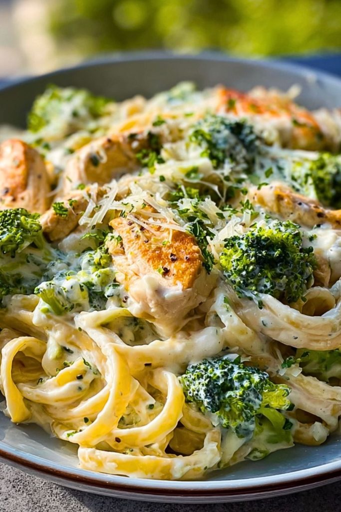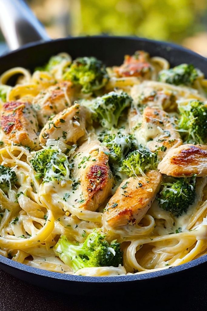 I’ve always loved Alfredo pasta, but adding broccoli and juicy slices of golden chicken takes it to another level. The balance of flavors and textures — the crunch of the broccoli, the silkiness of the sauce, and the hearty protein — makes this dish a complete meal that checks every box. Whether you’re feeding picky eaters or hosting friends for dinner, this pasta never fails to impress.