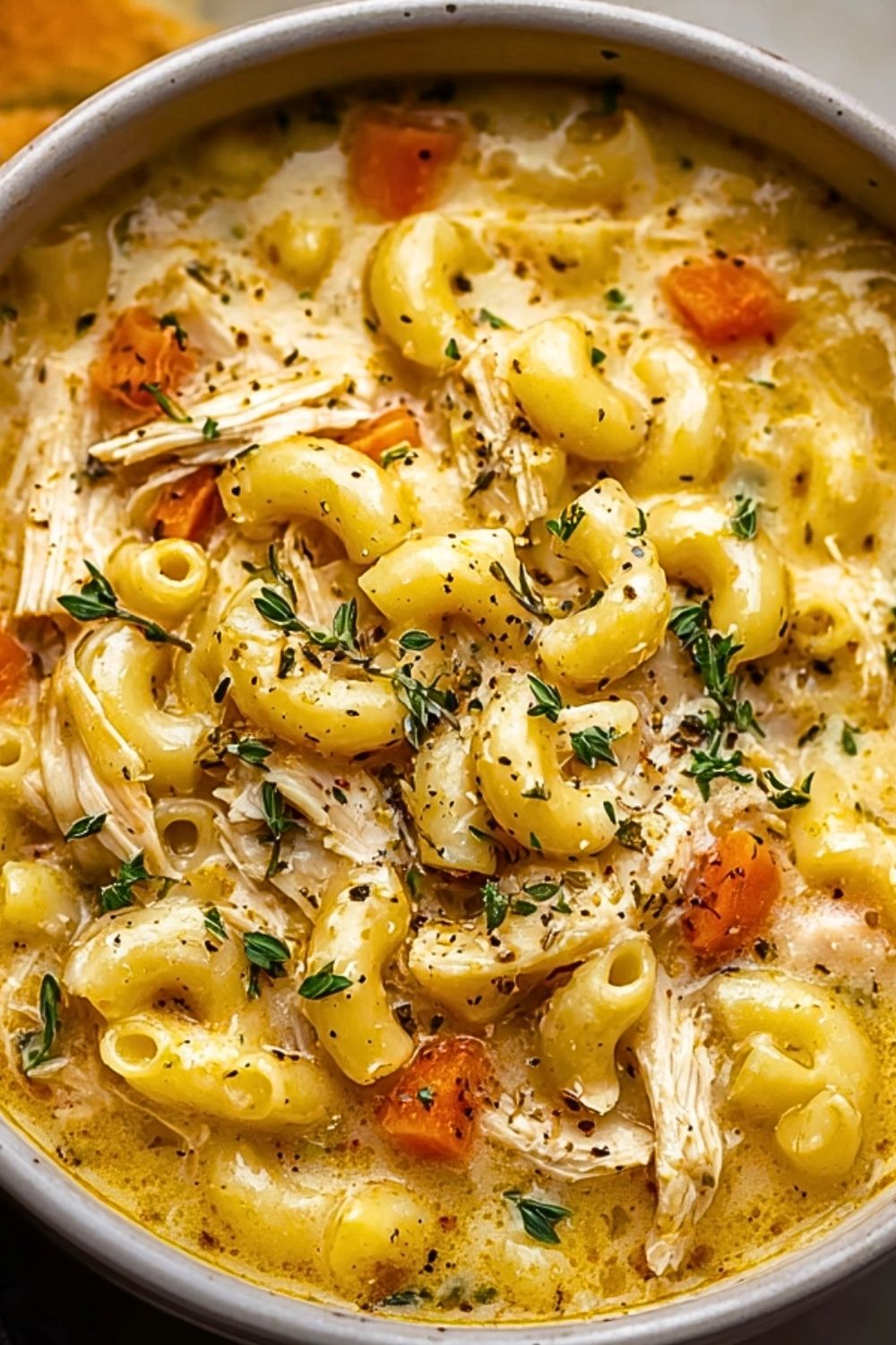 Creamy Chicken Macaroni Cheese Soup