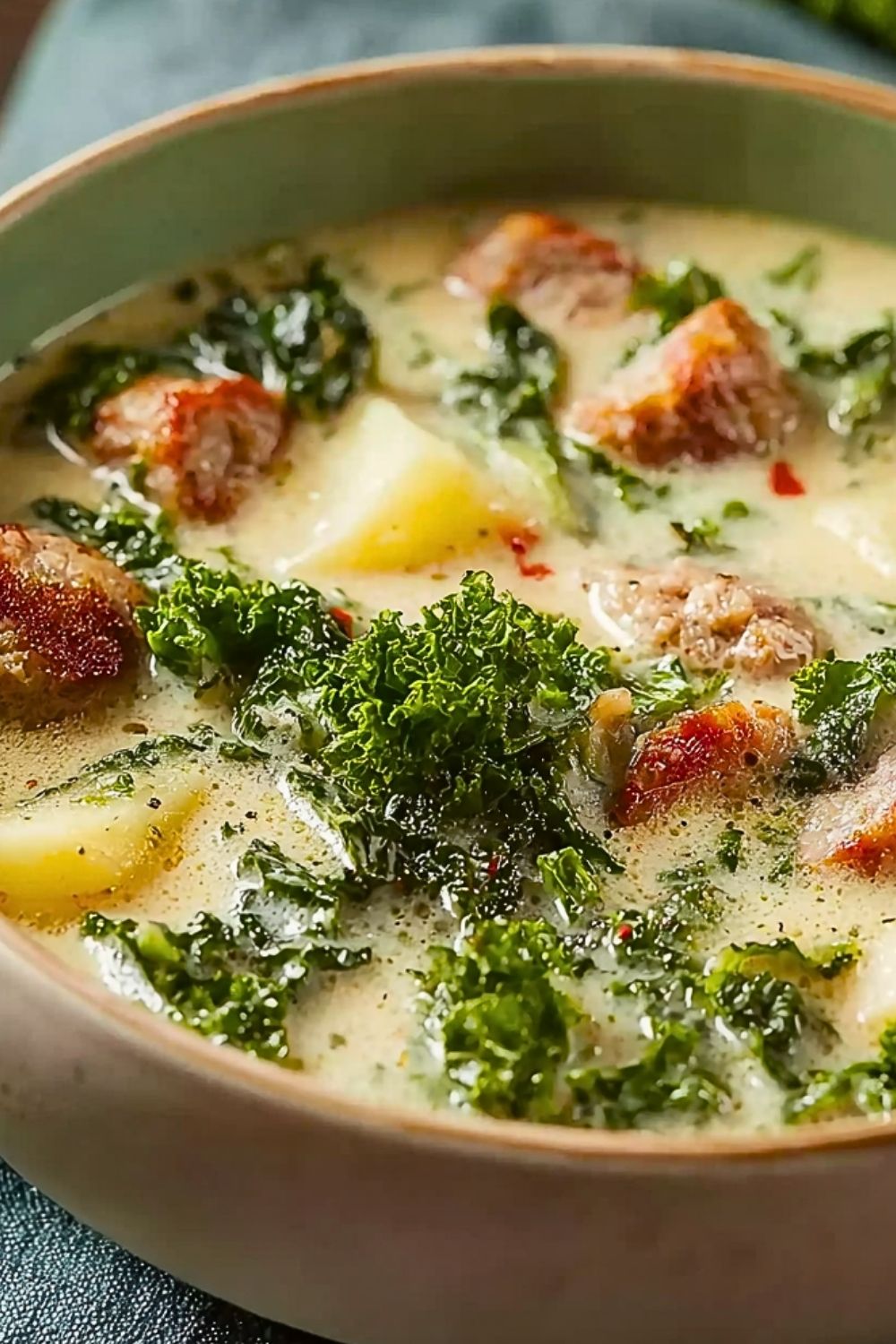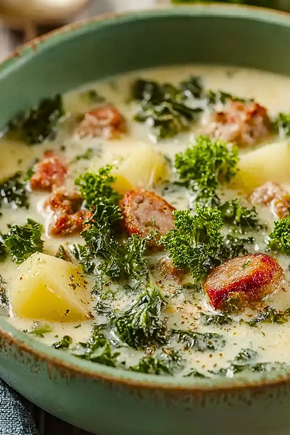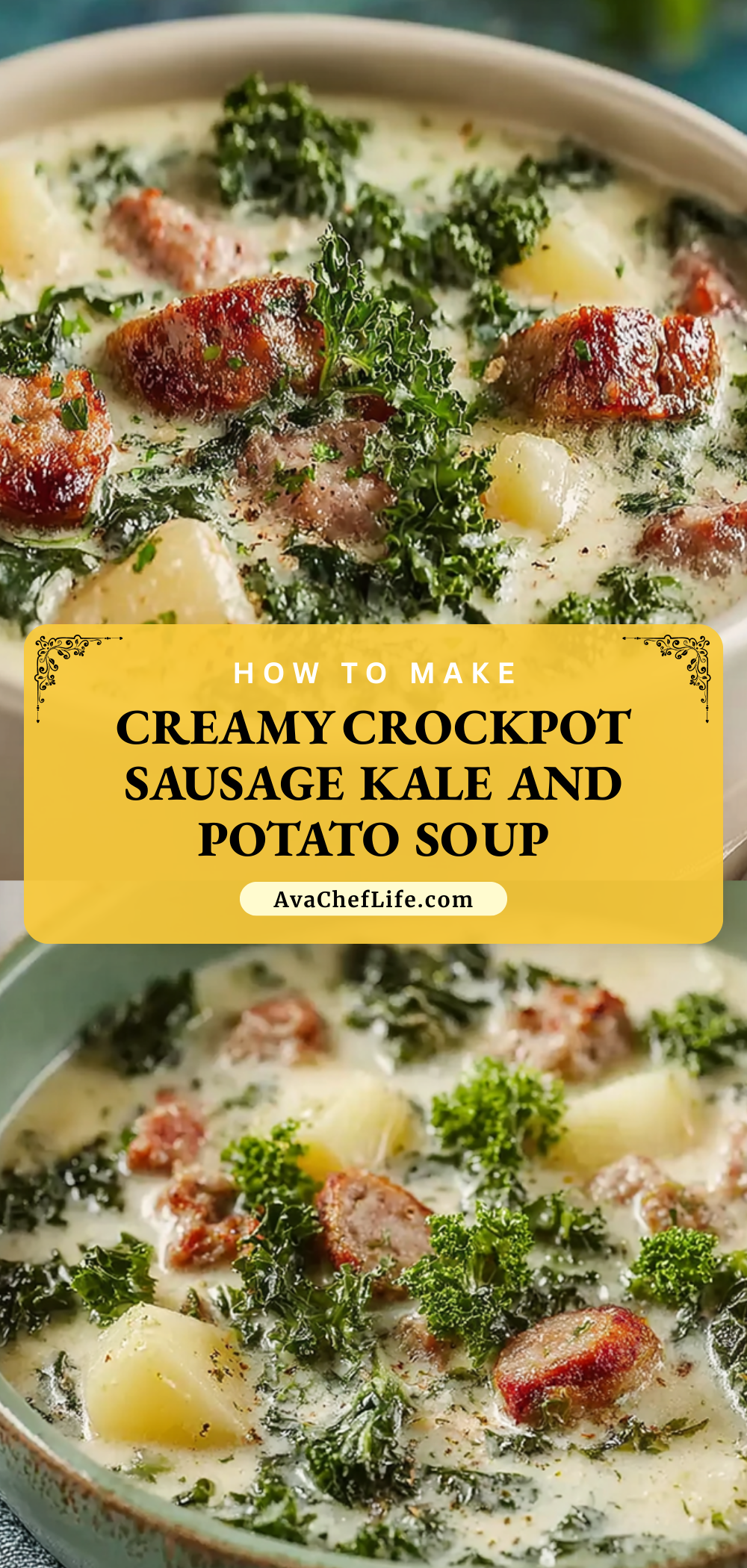 Keywords: crockpot soup, sausage potato soup, creamy sausage soup, kale soup recipe, easy dinner ideas, comfort food soup