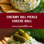 If you want to make it even further ahead, you can freeze it. Just shape the cheese ball, wrap it tightly in plastic wrap followed by foil, and freeze for up to 1 month. When you’re ready to serve, let it thaw overnight in the fridge and then roll it in the fresh dill/pickle coating just before serving to keep the texture and color vibrant.