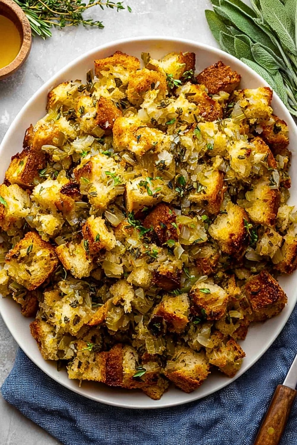 Keywords: crispy herb stuffing, easy dinner, stuffing recipe, holiday side dish, Thanksgiving food