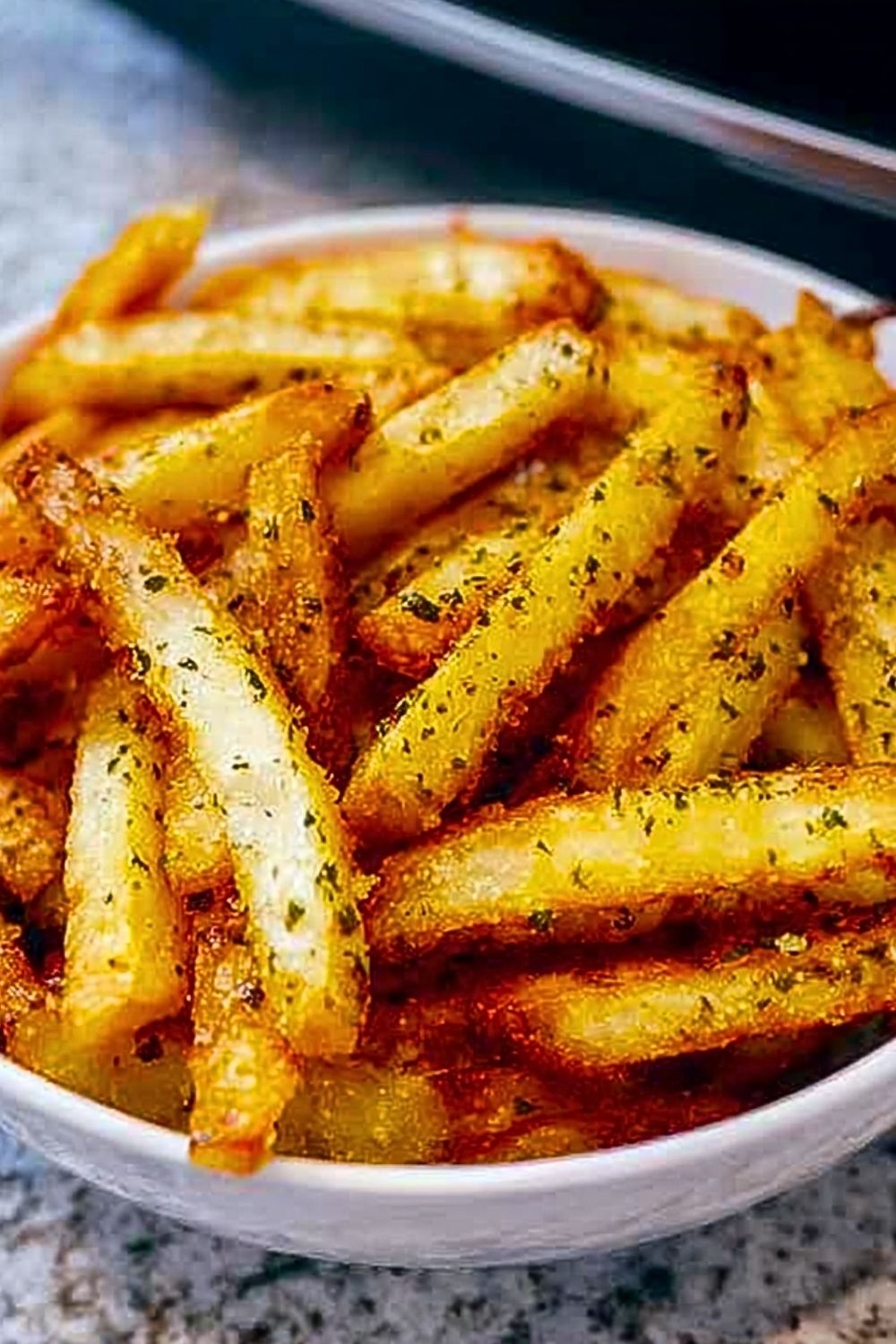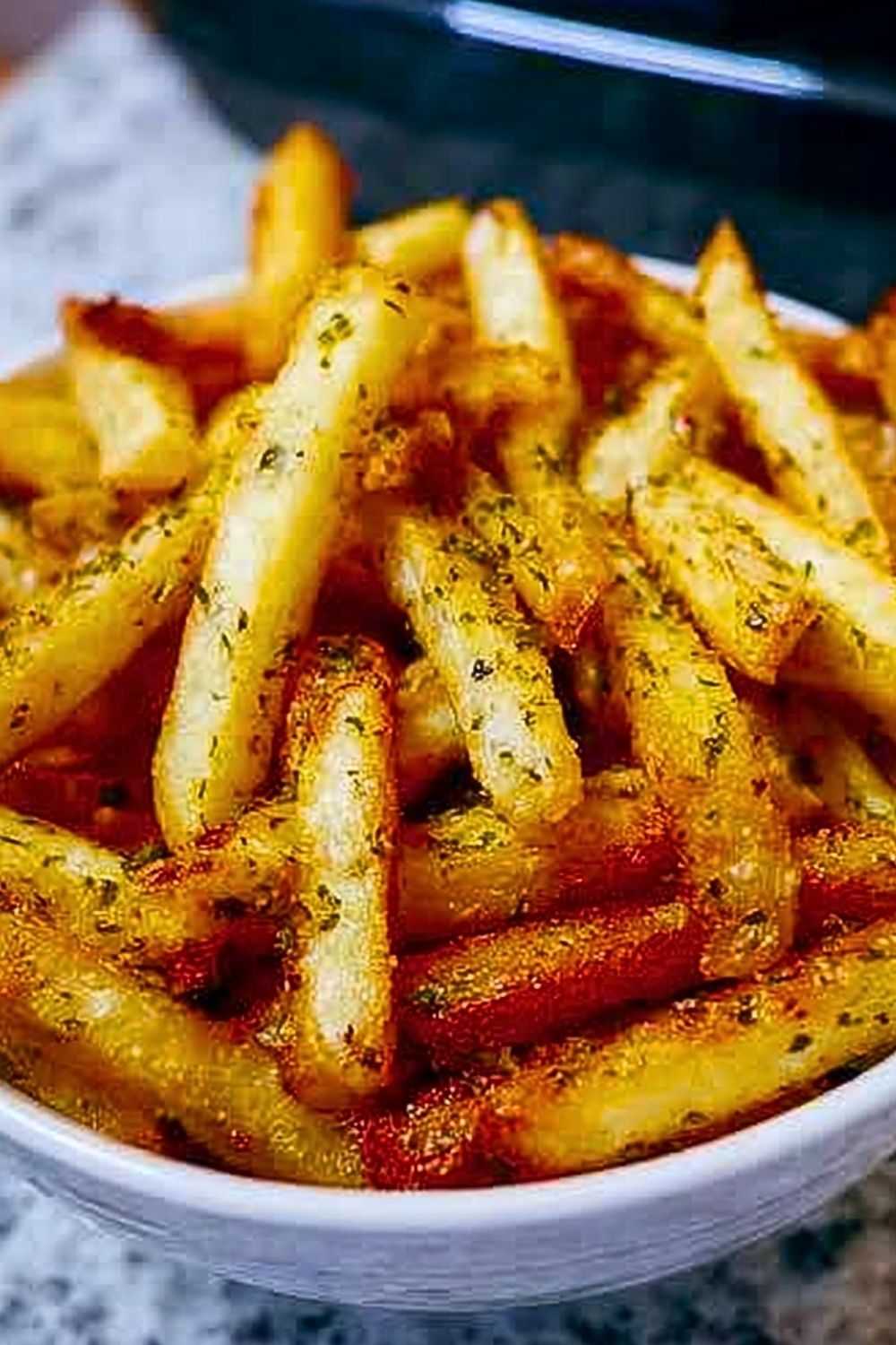 Once cooked, remove the fries and immediately sprinkle with a touch more salt and optional dried herbs like parsley or Italian seasoning. Serve hot with your favorite dipping sauce.