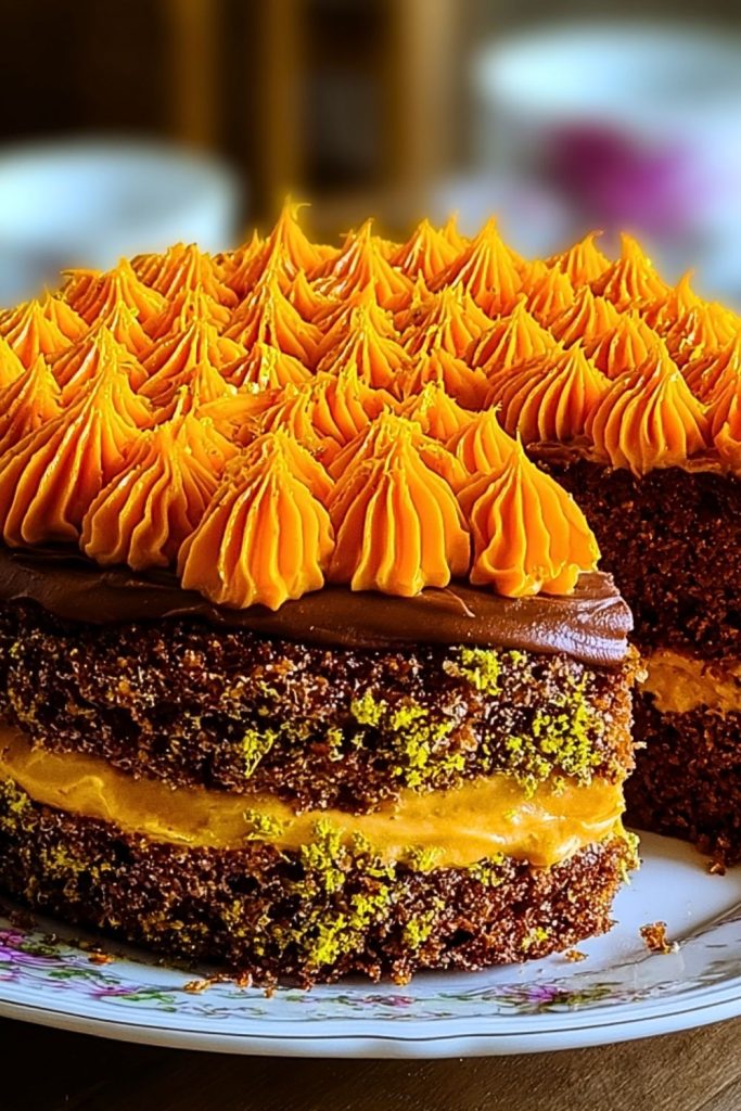 Moist, rich, and irresistibly vibrant, this Decadent Brazilian Carrot Cake is a feast for both the eyes and the taste buds. Unlike traditional carrot cakes that lean heavily into spices and chopped nuts, this Brazilian twist showcases a silky carrot purée that’s blended directly into the batter, creating a tender crumb and an eye-catching golden hue. But what truly sets this version apart is the luscious dual-layer of creamy chocolate and carrot frosting, piped generously on top and layered inside for maximum indulgence.