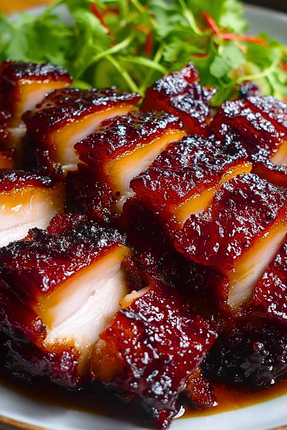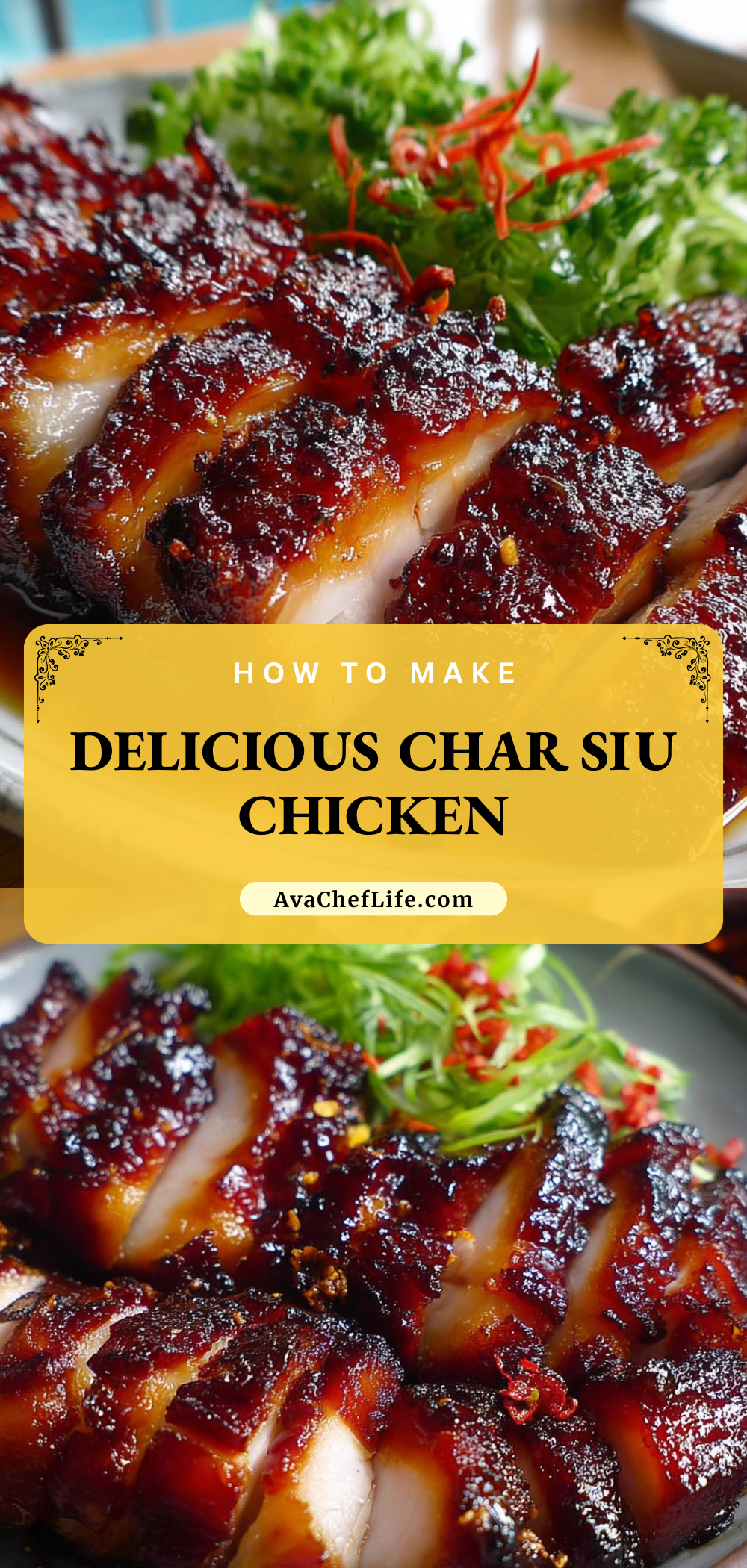 Sprinkle freshly chopped green onions over the sliced Delicious Char Siu Chicken. Serve immediately with steamed rice, noodles, or your favorite vegetables.