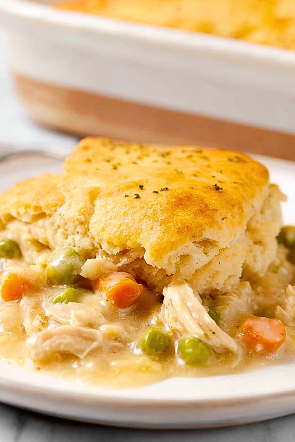 Keywords: chicken pot pie, biscuit topping, cobbler casserole, comfort food, easy dinner