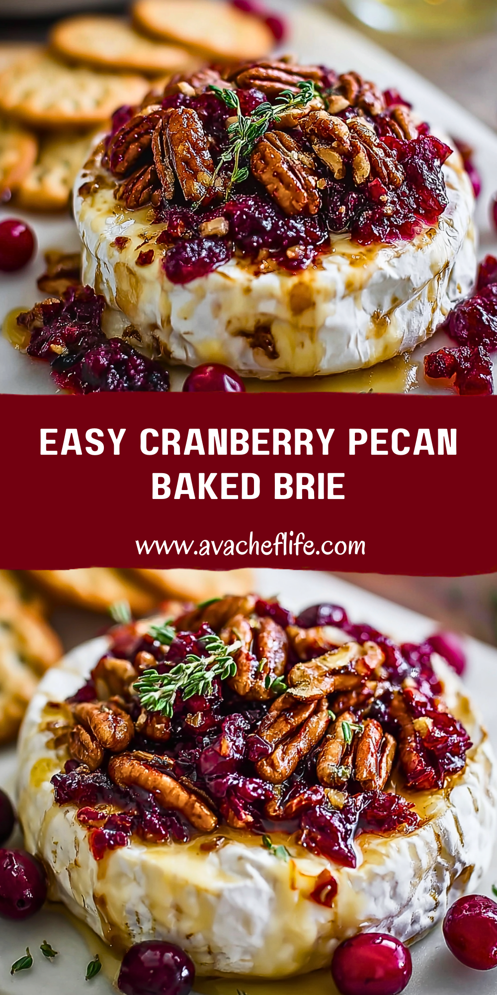 Keywords: easy appetizer, holiday snack, quick cheese dish, party recipe, baked brie, cranberry pecan brie