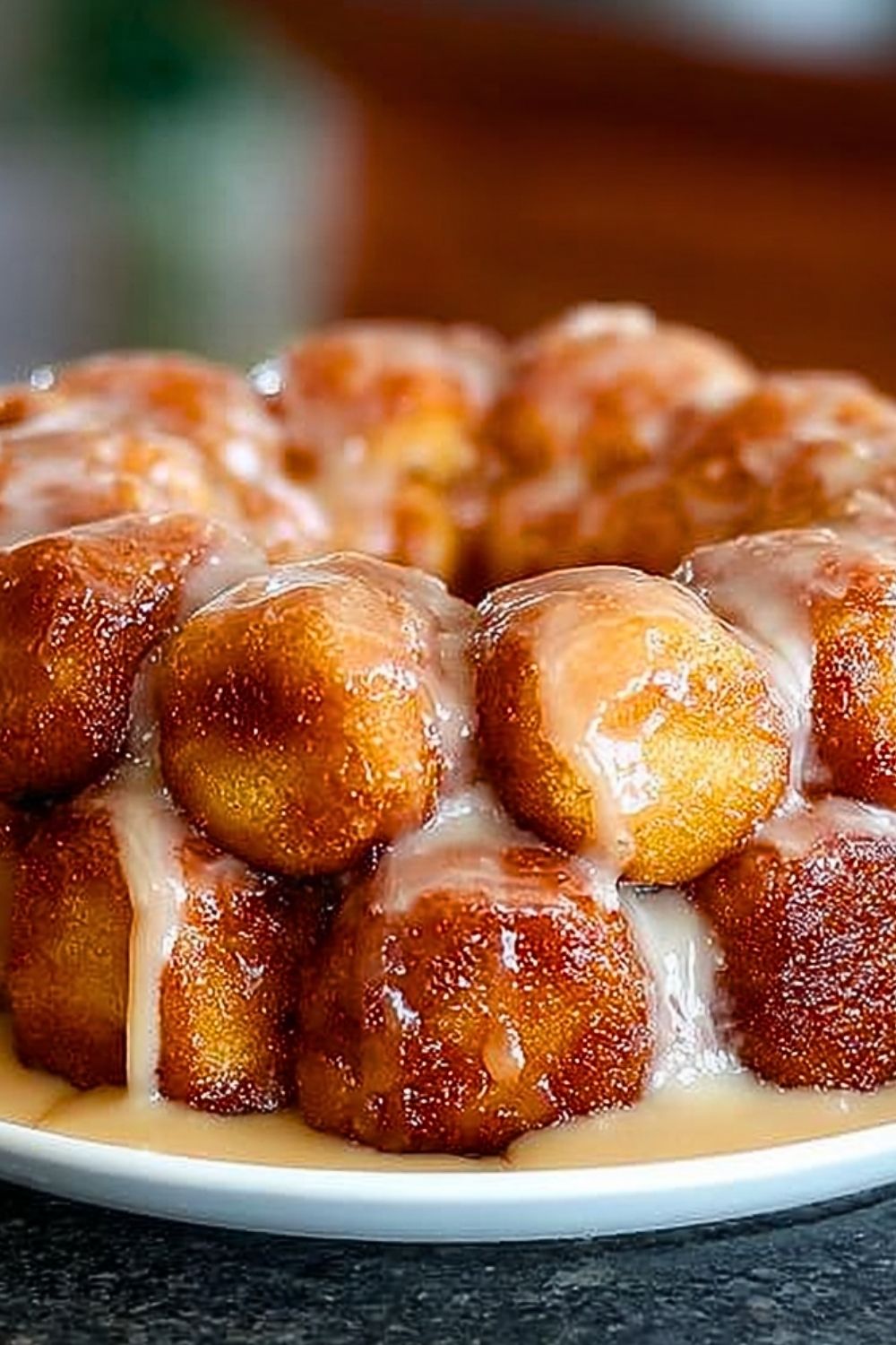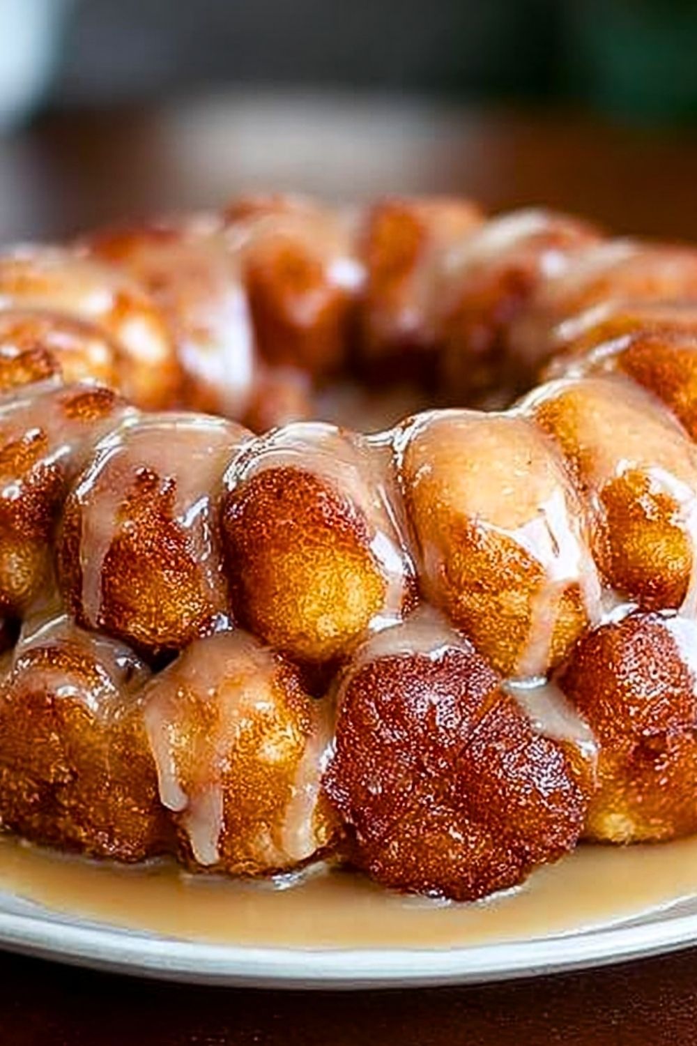 Drizzle the vanilla glaze generously over the warm monkey bread. Serve immediately while it’s soft, sticky, and irresistible.
