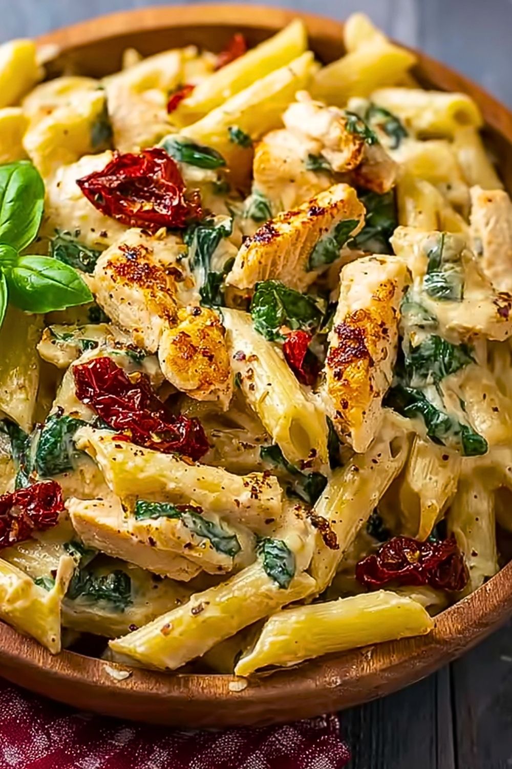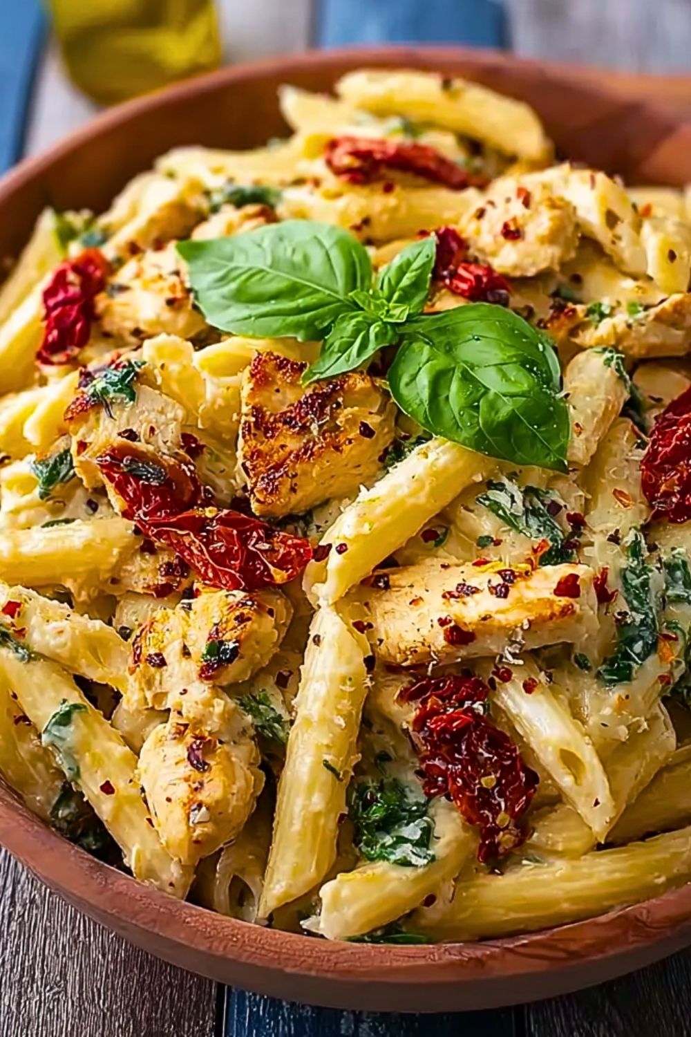 This pasta recipe is more than just a meal—it’s a statement. It’s hearty, packed with flavor, and has just enough sophistication to make it special for guests, while still being simple enough for a cozy weeknight dinner. The savory sear on the chicken, the indulgent creamy sauce, and the punch of sun-dried tomatoes combine to create something truly irresistible.